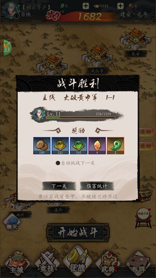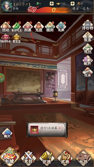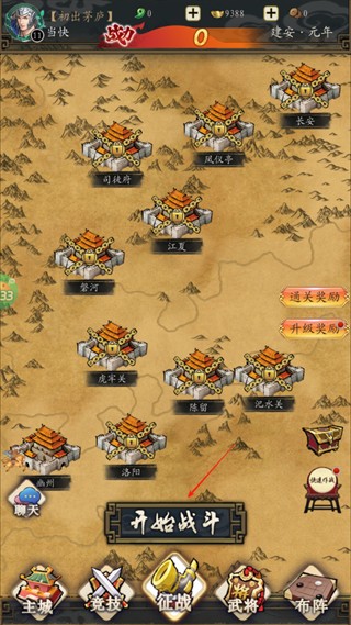 3、将刚刚招募到的武将上场点击征战,开始战斗