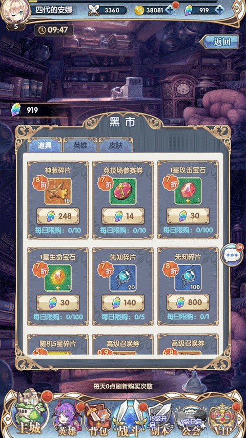 每日必买20钻的高抽卷和10万金的英雄进阶石,钻石有盈余的600钻的先知球也可以买