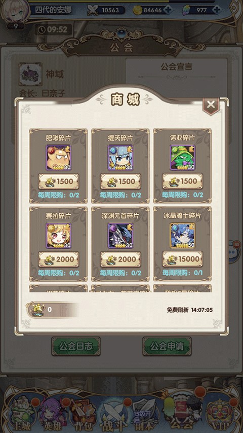 团结之力优先购买冰晶骑士碎片,没需求时留着点公会科技