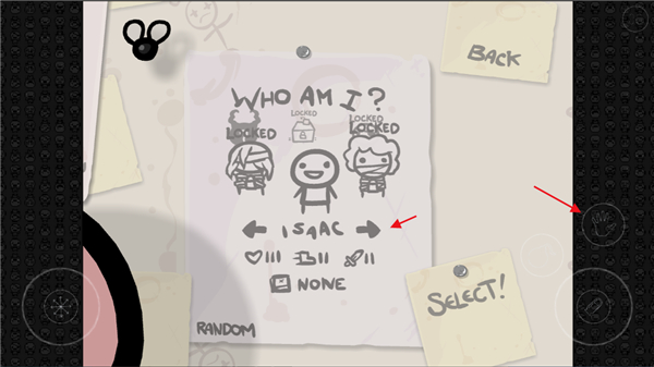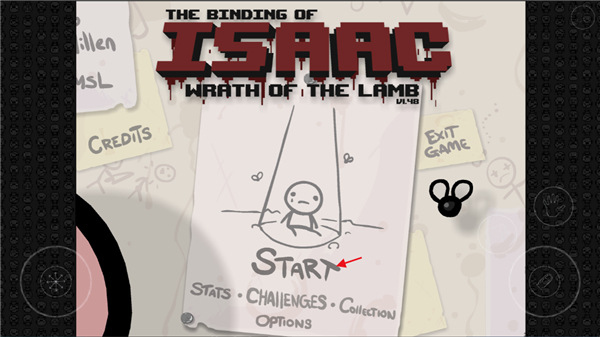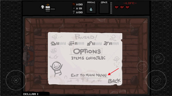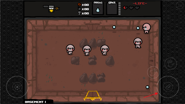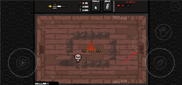 1、进入以撒的结合手游,点击右上角的选项;