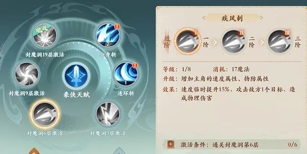 4技能:疾风刺,单体1次伤害,速度临时提升15%(2阶:目标不会触发保护、3阶:技能伤害结果额外增加10%)