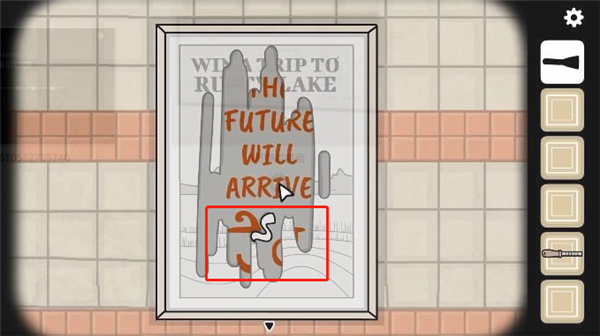 6、在婴儿车旁边的场景里有一张海报,用铲子把海报刮烂,就看到“THE FUTURE WILL