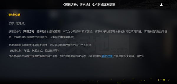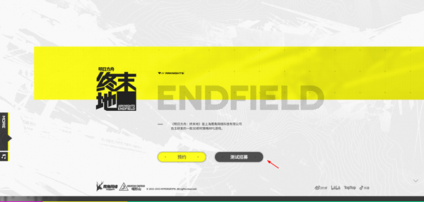 1、打开明日方舟终末地官网:https://endfield.hypergryph.com/home,点击下方测试招募;