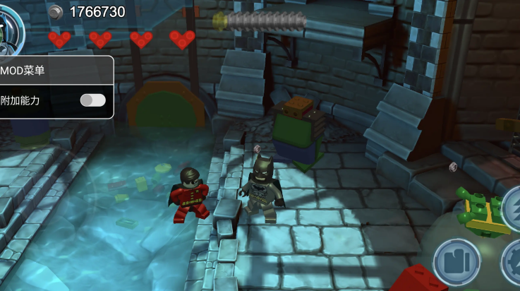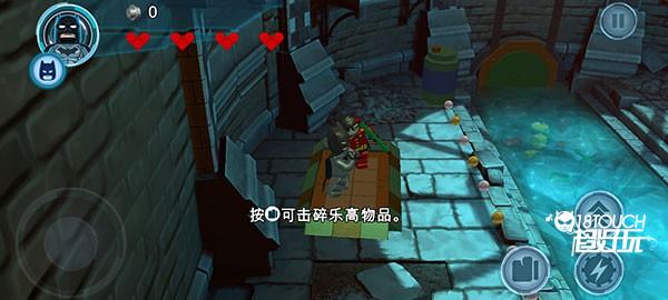 3、通过控制左下角轮盘可以操纵角色移动,点击拳头就可以敲碎乐高物品
