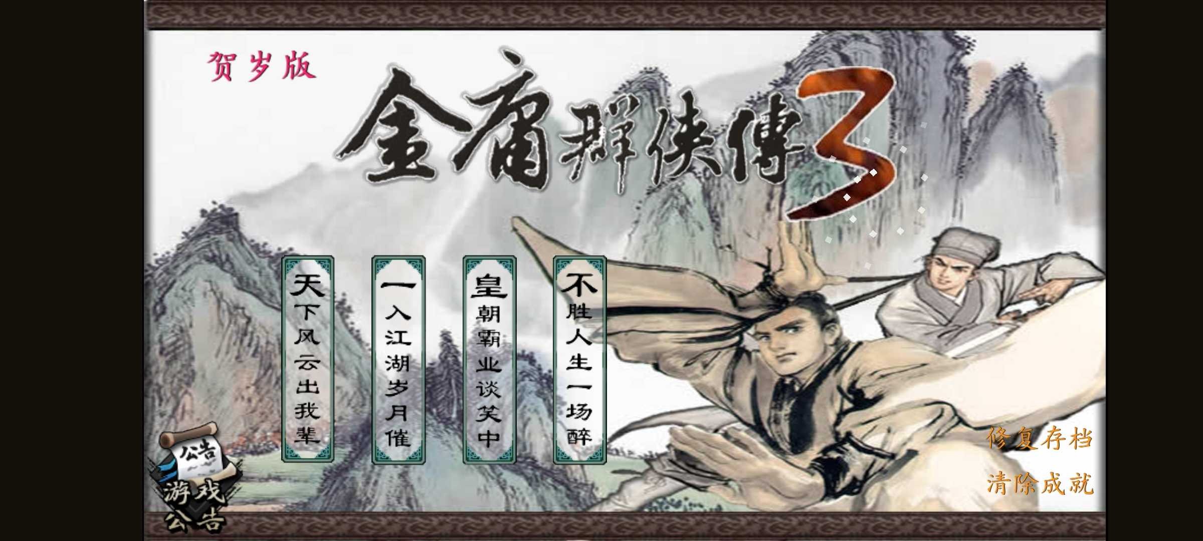 《金庸群侠传3》原版是由半瓶神仙醋开发的一款flash角色扮演游戏,于2009年发行。该作品沿袭《金庸群侠传2》采用自由开放的金书世界,该作的故事和门派以及战斗等至今还让人津津乐道。此次的2019版重制是在获得半瓶神仙醋的授权后,由金群mod作者[08]云淡风清[04]精心制作,移植至安卓系统,该[金庸群侠传3手机贺岁版]由拉达进行二改,在保留原游戏内容的基础上,会视情况依照个人所长进行更新维护,并保持免费,绝不开设商城收费!