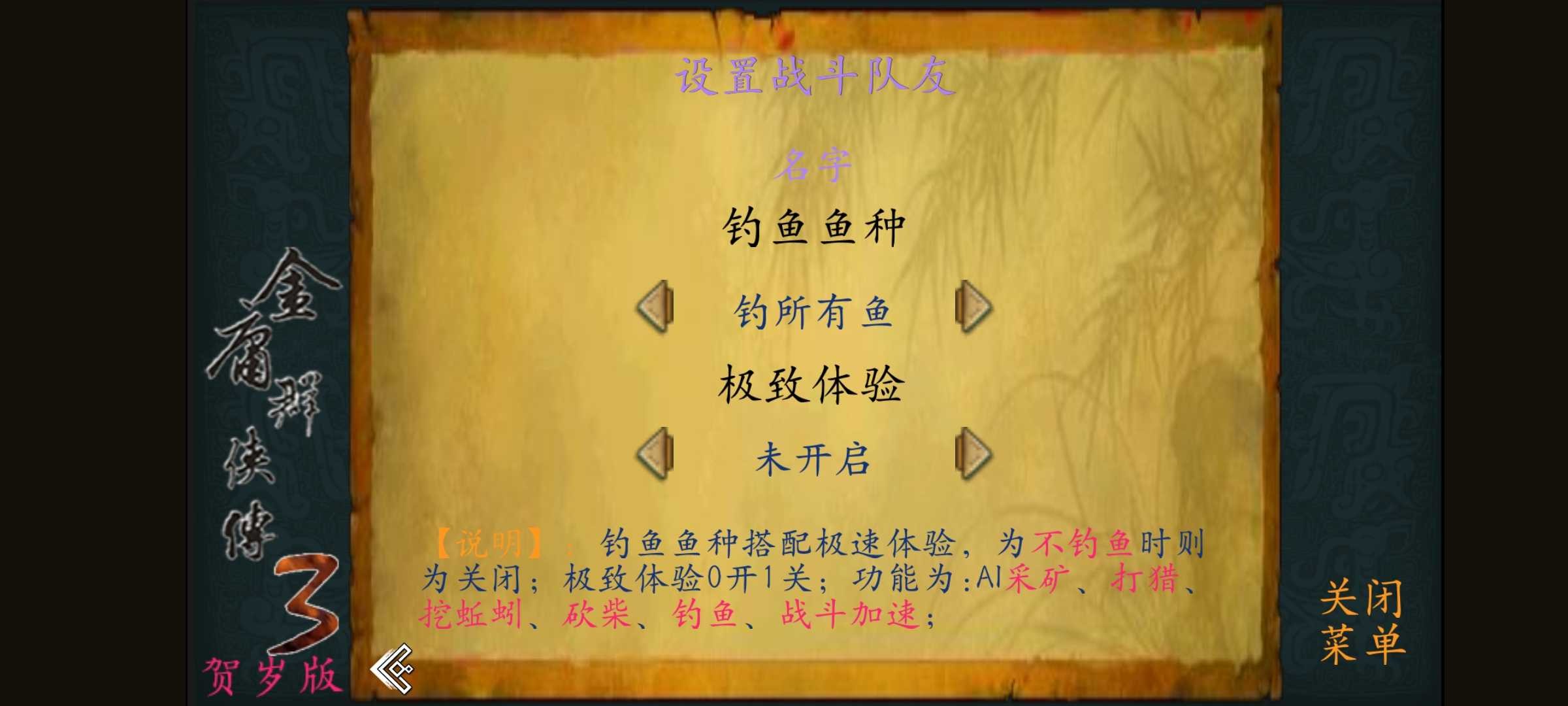 加强版:主要修正了以前版本中的若干BUG,包括数值修正和功能改进。例如,增加了钓鱼、采矿、打猎等活动的数值加成,降低了铜人阵难度,强化了武当、全真、古墓派等门派,修正了郭襄加入黑屏的BUG、队友属性增长的BUG、武器消失的BUG等。