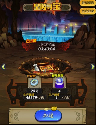 3、中型宝库:产出银币,额外产出各类丹或元宝,需要三名玩家攻占。