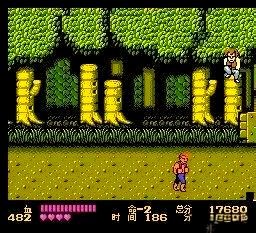 另外,有些位置需要用【↓↑+跳】大跳飞踢(用来跳过更高的台阶),特别是第一关中的河道位置就是需要这样才能跳上来。
