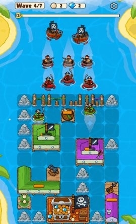 游戏中的敌人种类繁多,既有普通的海盗喽啰,他们成群结队地冲锋陷阵;也有擅长远程攻击或近战冲锋的海盗船,给玩家的防御带来极大的挑战。面对如此多元的敌人,玩家必须时刻保持警惕,灵活调整防御策略,才能在战斗中立于不败之地。