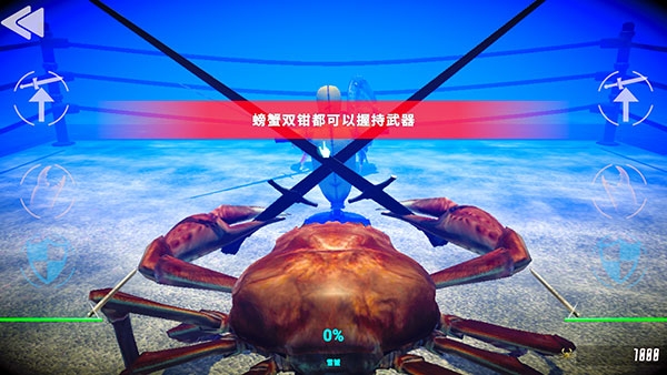 7、螃蟹双钳都可以握持武器,武器可在局外配置,携带进局,也可以通过局内环境拾取。
