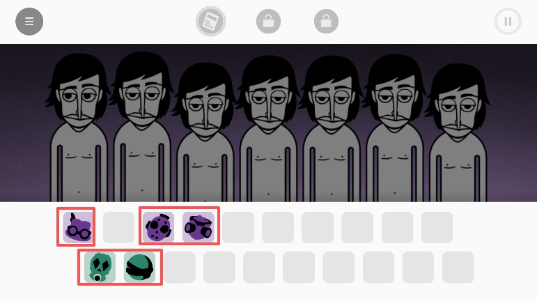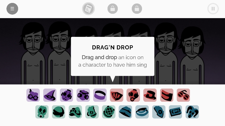 2、将那些图标拖动到角色身上,可以激活相应的节奏和声音,从而组合成音乐。