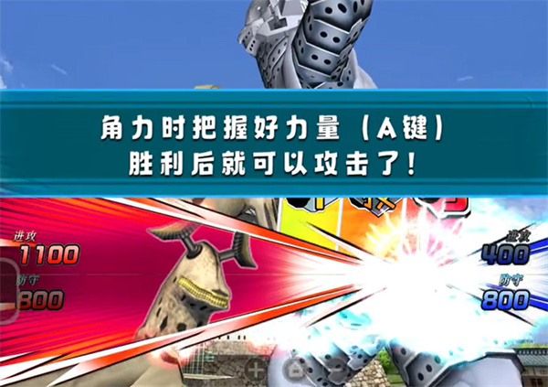和怪兽角逐时把握好力量,a键可以控制力量