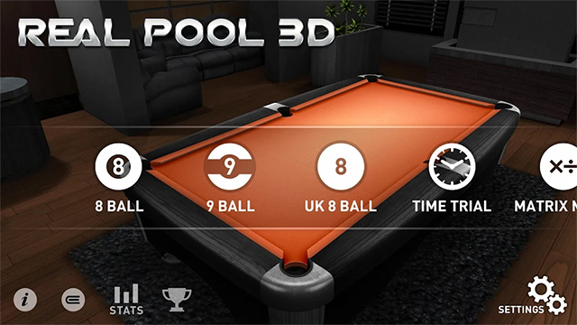 1、打开真实台球3D游戏手机版,等待游戏加载完毕,就可以看到游戏的主界面了,选择根据自己的喜好选择其中一个台球模式。