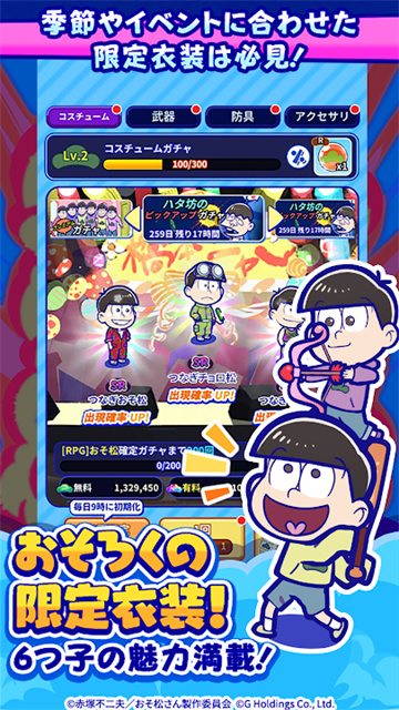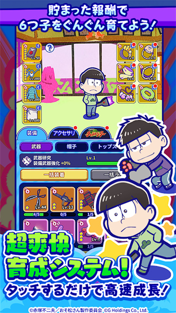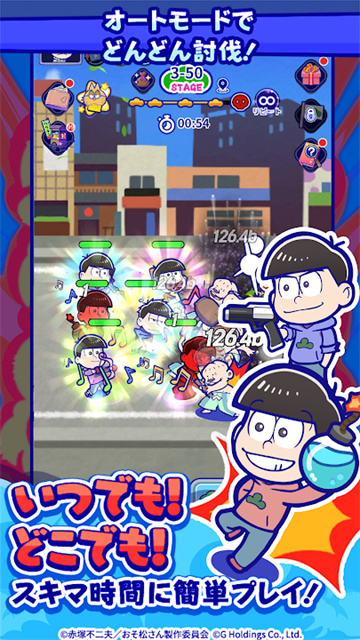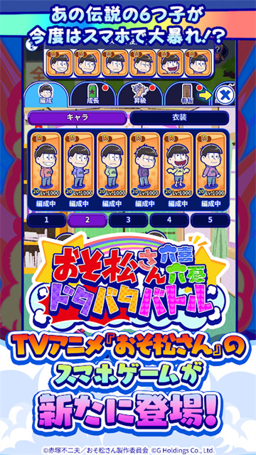 阿松六喜六忧大乱斗(阿松六喜六忧大作战)是一款根据同名TV动画《阿松先生》改编的趣味冒险小游戏。简称“阿松”。传说中的六胞胎,现在就在你的手机上行动起来!只需等待就能获得奖励,不断成长!简单易用!和“最强尼特”们一起享受闲暇时光吧!