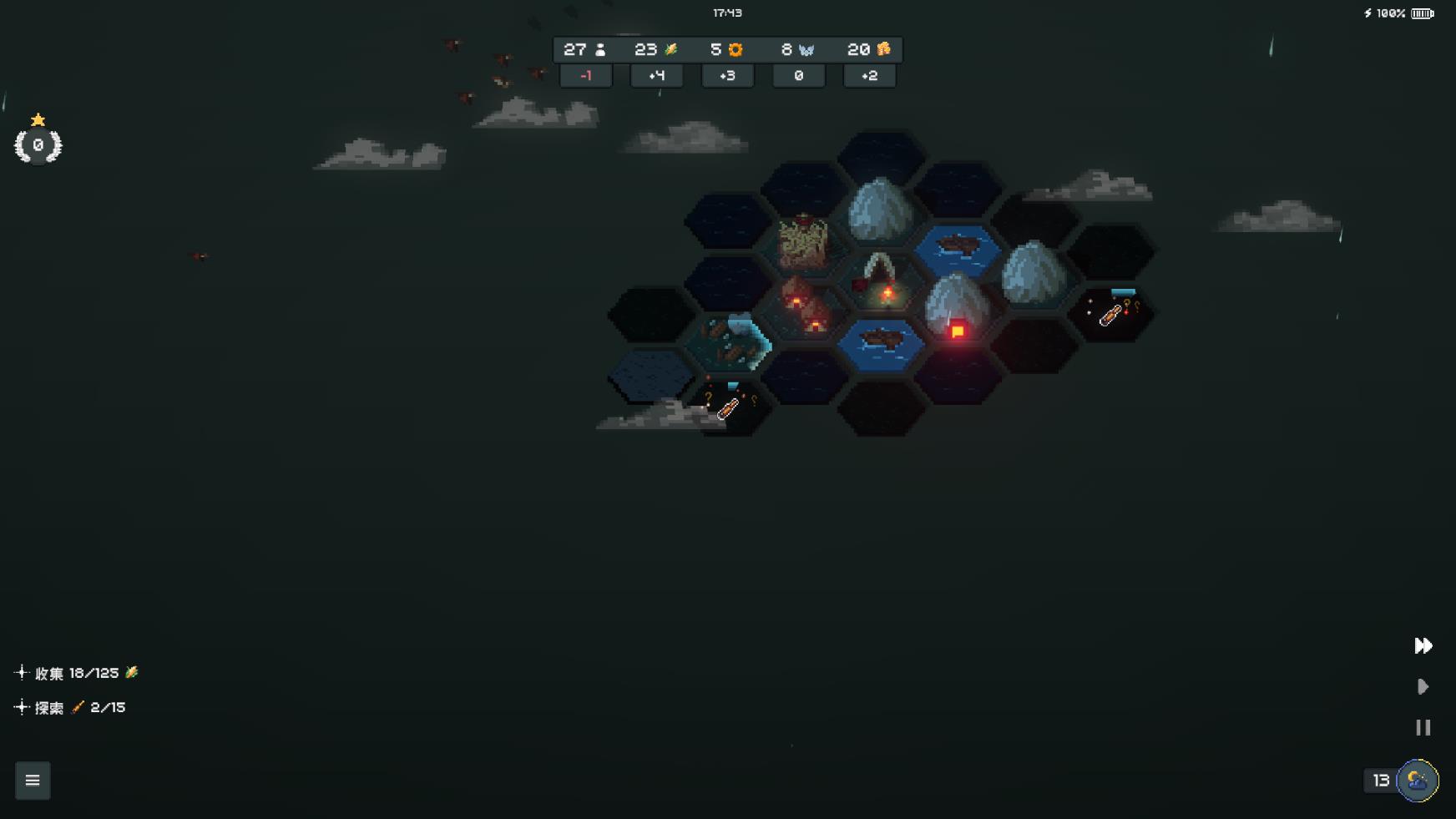 7、点击左侧的星星可以选择研发不同的科技,每次研发都会消耗不同数量的星星。