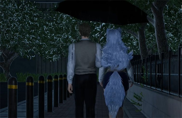 男主彻底接受了芙蕾雅,这时外面下起了雨,和芙蕾雅一起打伞回家。