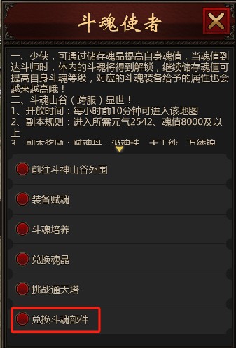 6、斗魂牌可由斗魂使者处“兑换斗魂部件”—“兑换斗魂牌”获取。