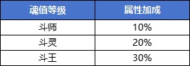 元气达到1160时,可在NPC「斗魂使者」处可开启系统。玩家将魂值等级培养至1000(斗师)后才可使用「斗魂」,魂值达到不同阶段时,可提高自身所有已开放斗魂槽位百分比属性。