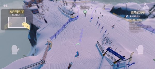 2、设置好后,点击开始,玩家可通过点击两侧手掌图标操纵滑雪板加速前进;