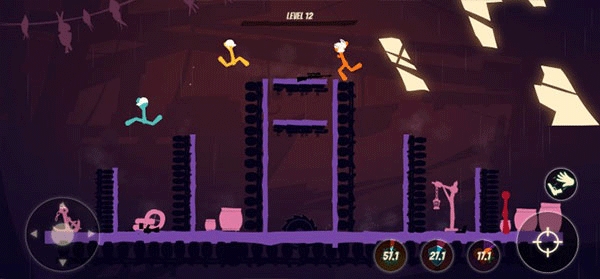 2、是中你能看到四个火柴人总是在无休止的打斗中,你将操控其中一位,来打败你的竞争对手。
