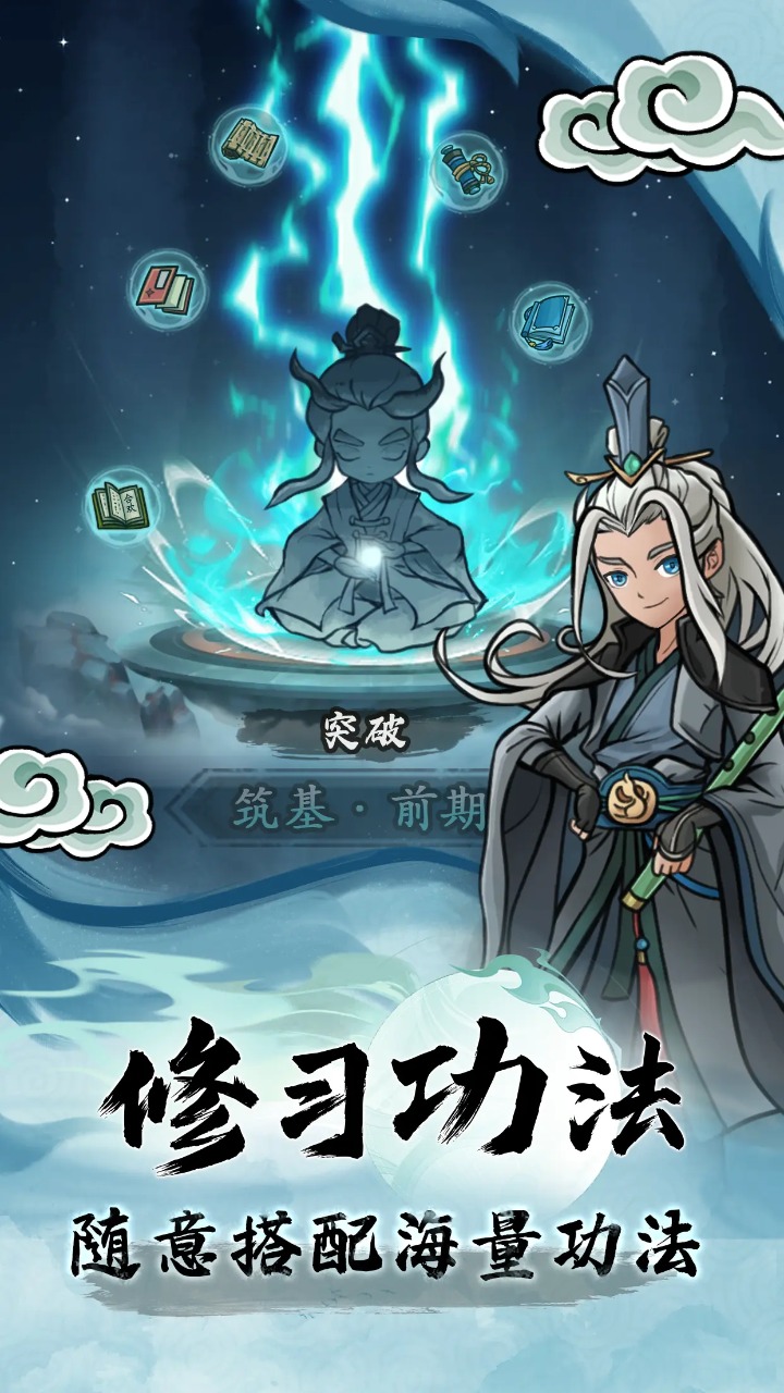 功法搭配:收集 50 + 窥天碑残卷,自由组合金木水火土五行功法,触发 "灼烧真伤"" 冰冻控制 " 等特殊效果。