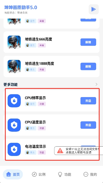 5、还提供了一些辅助功能,如CPU频率显示、电池温度显示等。