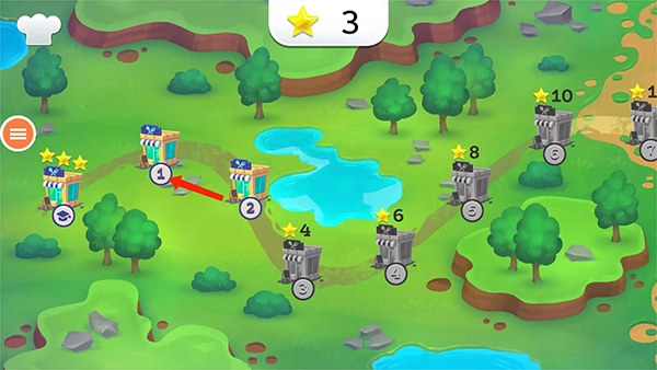 进入游戏地图界面后,你会看到各个关卡和对应的星级,在这里,我们以【第一关】为例进行说明。
