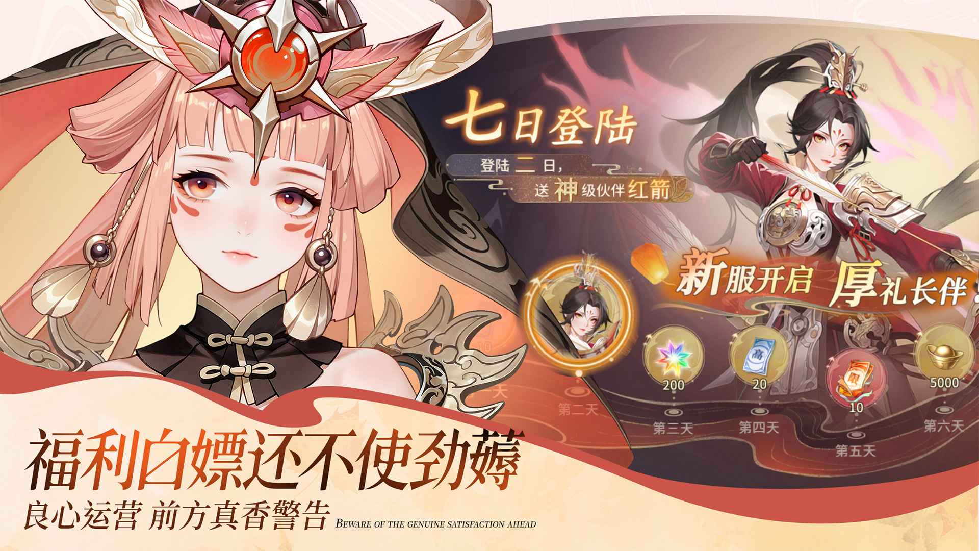 一、七日登录每日登录领丰厚福利,好礼天天不重样!次日解锁神级伙伴【红箭】,第六日直接狂送1000黄金!