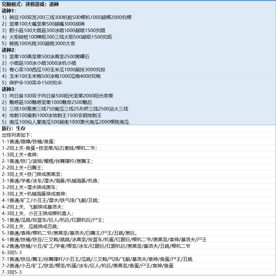 黑橄榄尸骑士、究极小鬼国王、特种武装巨人、镭射幽浮僵尸、樱桃鲸鱼重艇、雪兽骑士僵尸、小丑爆破王、僵尸火红莲(在出怪列表中属于僵尸,在场上属于植物)