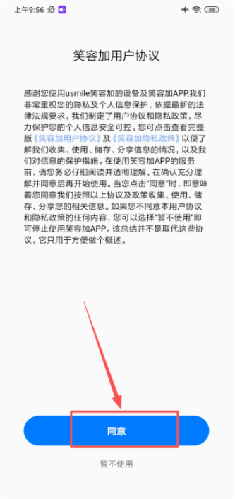 1、下载安装并打开软件,首先在用户协议提示中点击"同意",即可进入应用。