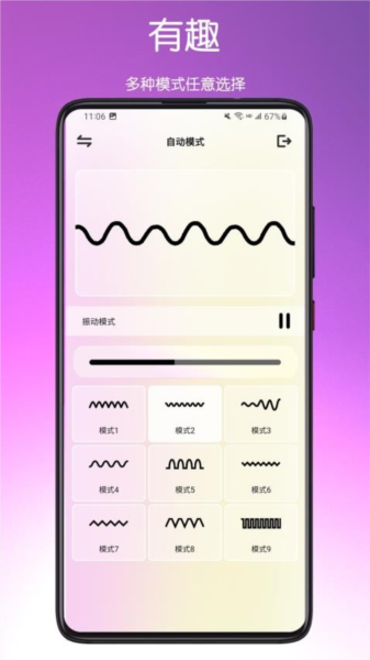 3、在自动模式页面,还能选择模式类型,并能打开震动模式。