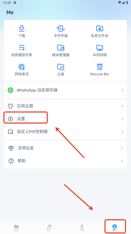 1.在播放前我们需要把所有的解码全部勾选这样就能让播放器播放更多格式的视频,音频,打开软件点击我的--设置