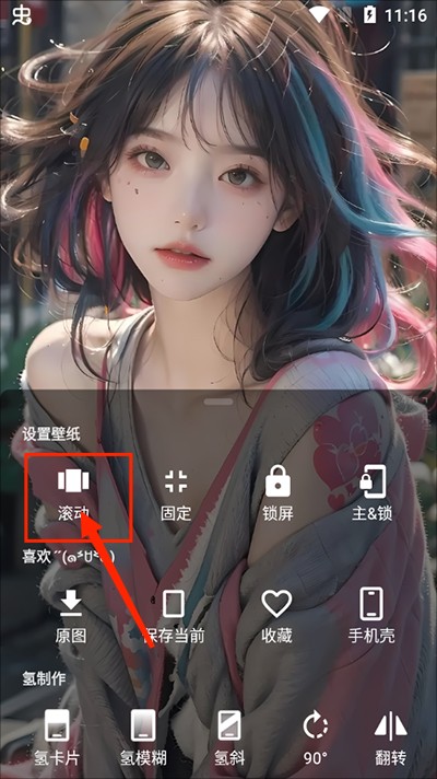 2.进入到壁纸详情界面后,点击界面后弹出菜单,点击滚动键即可