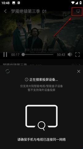 系统会自动搜索可投屏的设备,请耐心等待。若检测不到设备,可能因为是设备不支持。
