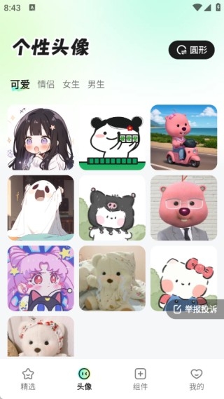 2、用户在头像的页面中可以看到很多精美的头像,还有情侣、女生以及男生等不同的分类;