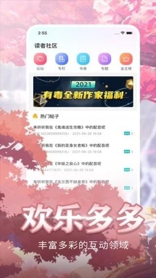 有毒小说是一款在线小说阅读软件,在这里你可以享受到各种各样的小说资源,能在这里看当前最新最热的小说资源,还每日更新海量新资源,让读者告别书荒,畅享阅读盛宴。