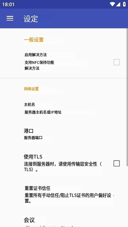 4、在设置方面,用户可以通过导航条进入“设置”界面,进行主机名、端口和会话的指定。