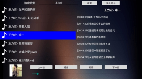 1、内置智能检索系统可根据模糊信息进行匹配,即使记不清完整歌名也能通过片段词汇找到目标曲目。