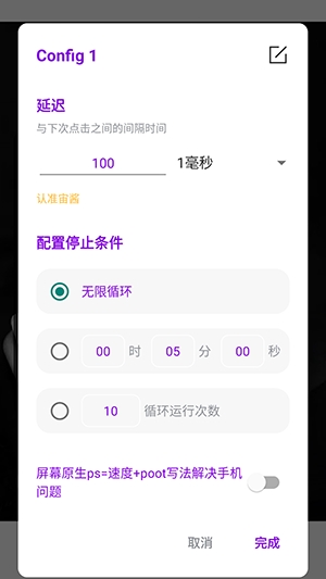 3、可根据需求自定义点击间隔,精确到毫秒级,灵活设置循环次数与随机延迟。