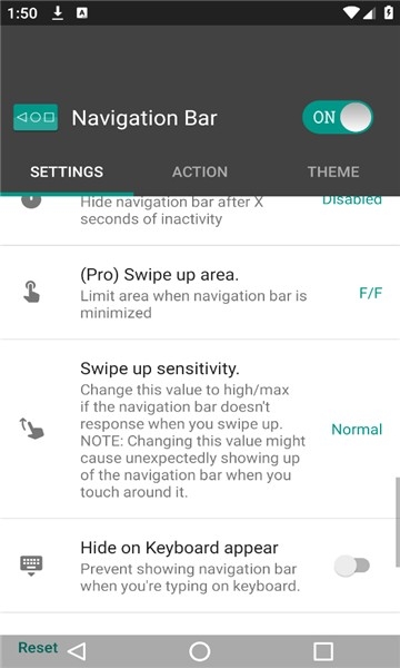 NavigationBar是一款非常好用的工具箱,支持丰富的自定义设置,可以将你的手机上面安装一个虚拟的导航栏,可以自定义隐藏设置,操作起来非常的简单,为用户带来更加流畅的操控体验。