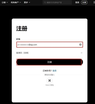 1,打开易欧app官网,点击页面右上方【注册】按钮进入注册页面,在首页输入邮箱地址。