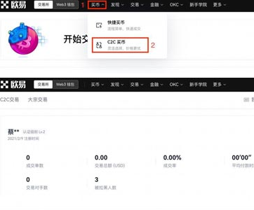 8.完成以上步骤后,在首页点击【买币】【C2C买币】