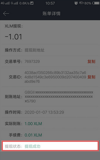 3、点击提现,选择“提现到地址”,进入提现页面,输入您的XLM提币地址,和需要备注的Memo以及提现金额; (注意:不要勾选“不使用备注”)