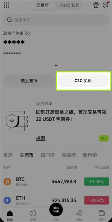 打开C2C交易模块:在欧意APP或网页版中,找到并点击“C2C交易”的入口。