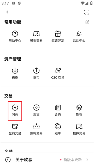 目前oe交易app平台上的大部分加密货币都是可以兑换的。欧易闪兑非常灵活方便,支持无论是将USDT兑换为BTC、ETH或其他数字货币,您只需在币种下拉菜单选中对应币种,系统将为您提供对应币对的兑换汇率。注意BTC/ETH不能闪兑任何山寨币(除BTC/ETH/稳定币外的币种),反之,山寨币也不能闪兑任何BTC/ETH除此之外其他币对,只要有现货交易币对,就可以通过闪兑兑换。
