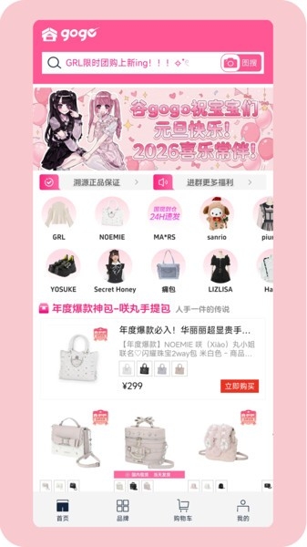 谷gogo是一款主打“品牌直达 +省心下单 +爆款集合”的时尚购物软件,主营各种日系好物,都是官方正品直邮的,无论您在生活中需要哪种类型的商品,都可以在这里直接找到,为年轻女性提供风格多样的穿搭选择。