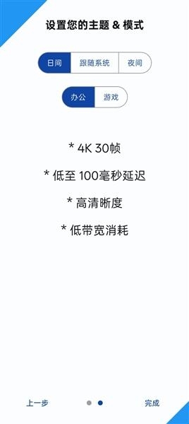 2.设置主题和模式以及分辨率、帧率等参数,点击完成