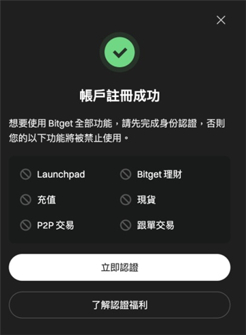 2、基本注册完成之后,系统会告知你还需要完成认证,才能开放大部分交易所的功能,因此我们必须继续完成认证。
