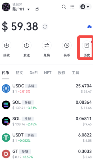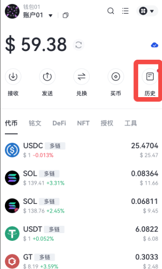 操作完成后,您可至插件首页的【历史】查看该笔交易的进程。