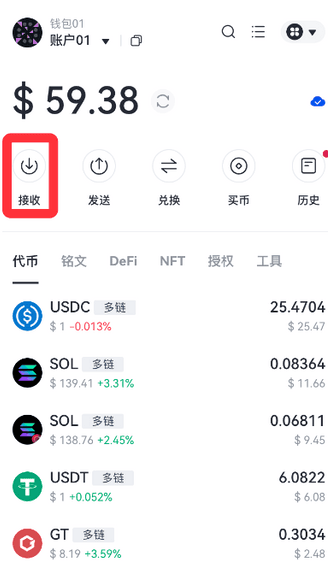 点击插件界面中的“接收”按钮,选择接收代币及接收网络,复制接收地址,粘贴至您进行转账操作的页面中即可。
